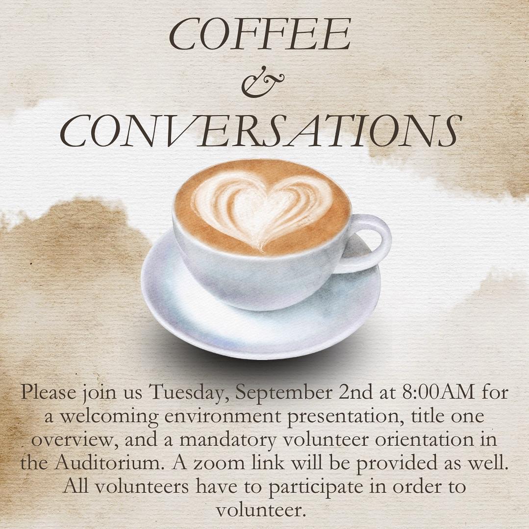 Coffee & Conversations w/Principal Garcia Join Zoom Meetinghttps://lausd.zoom.us/j/4731982096?omn=82154702811